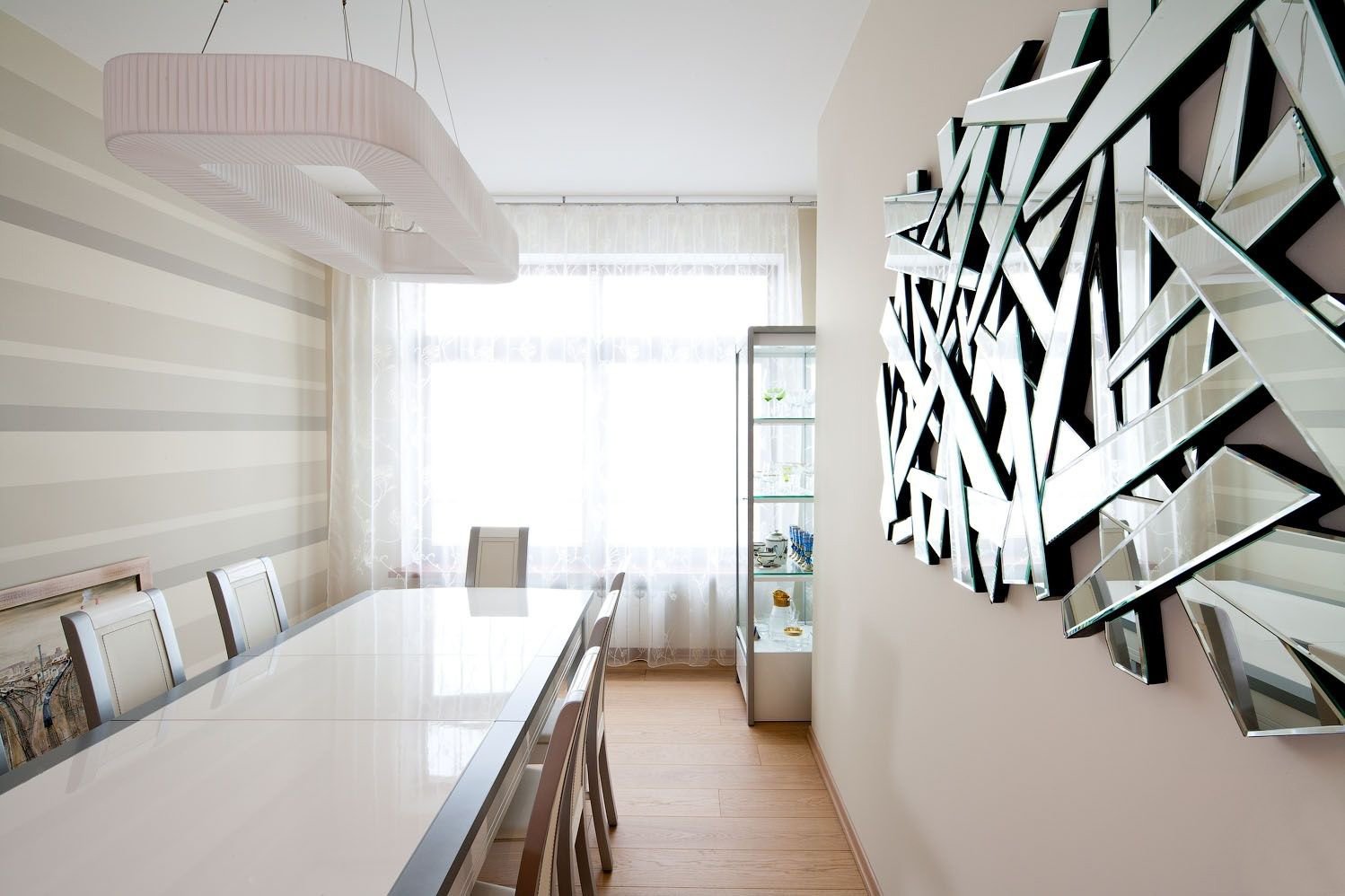 Зеркальные полосы на стене в интерьере
