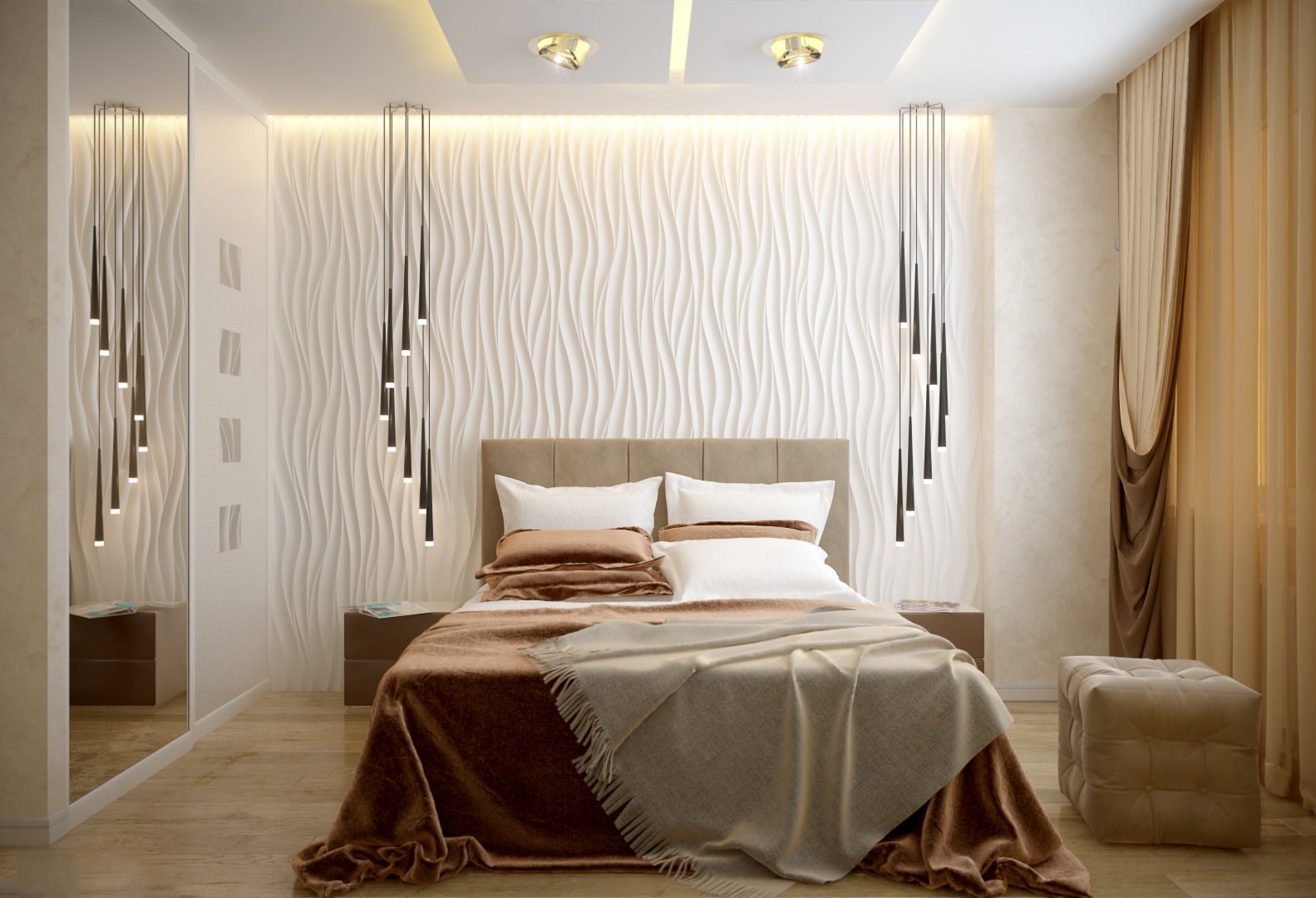 Гипсовые панели в спальне