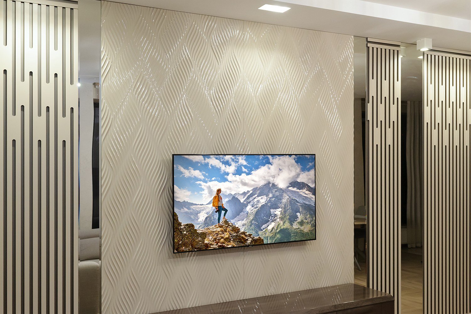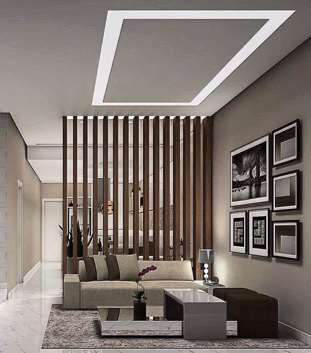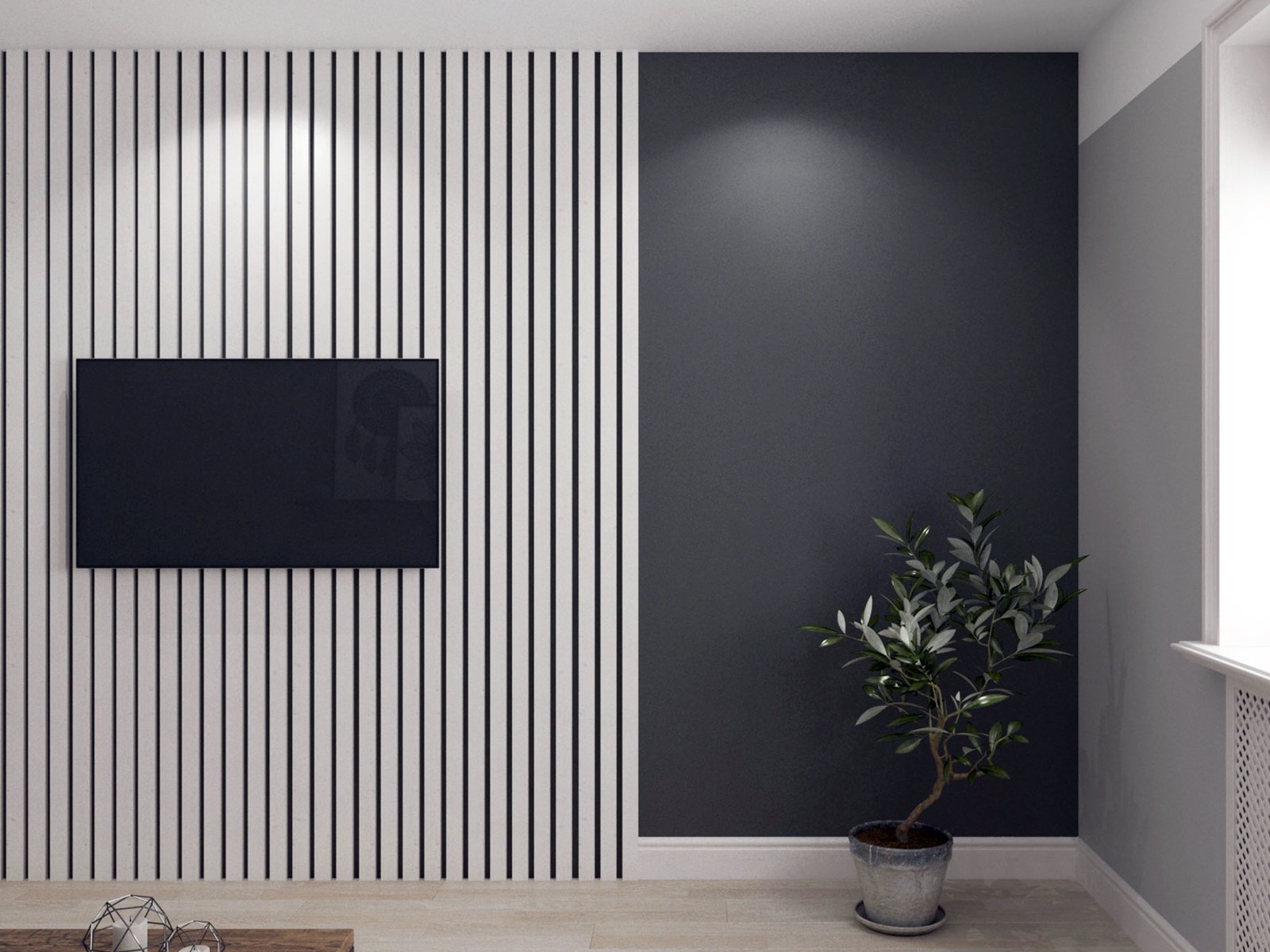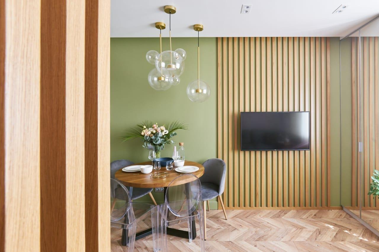 Гостиная с деревянными рейками