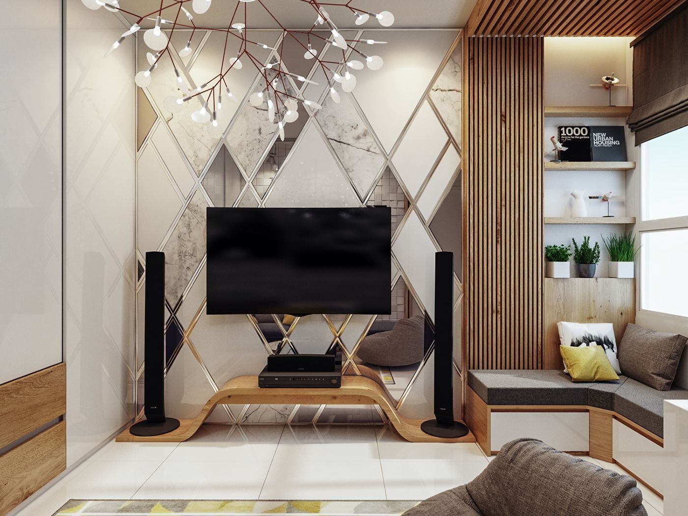Зеркала в интерьере гостиной в современном стиле