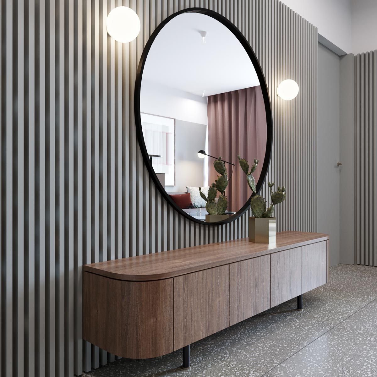 Зеркальные рейки в интерьере