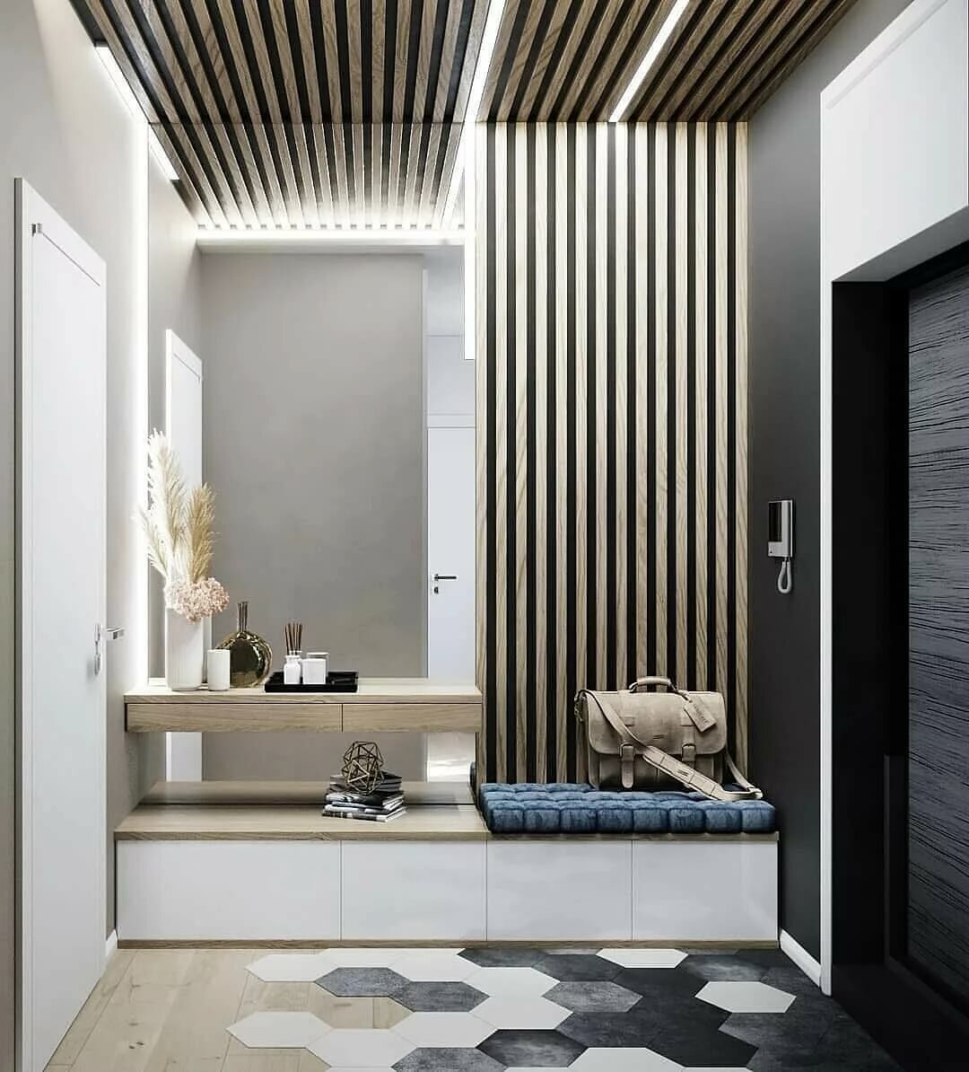Прихожая с рейками