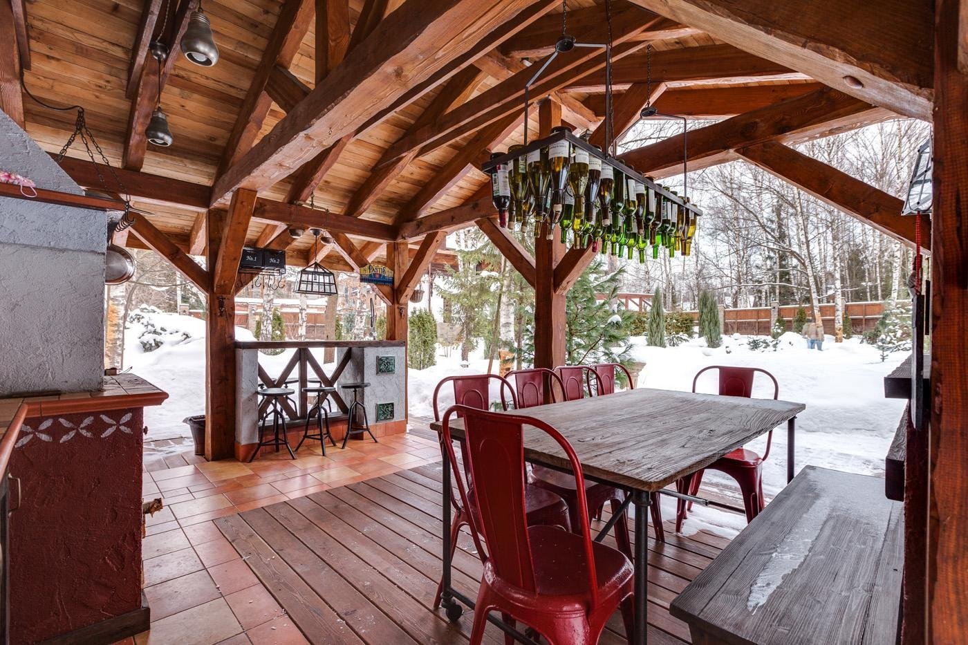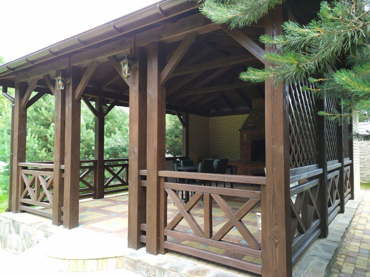 Деревянная беседка с барбекю