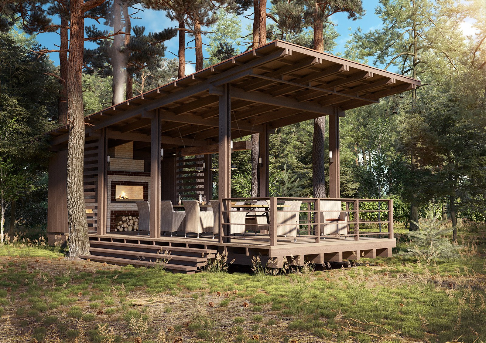 Беседка с мангальной зоной Кантри