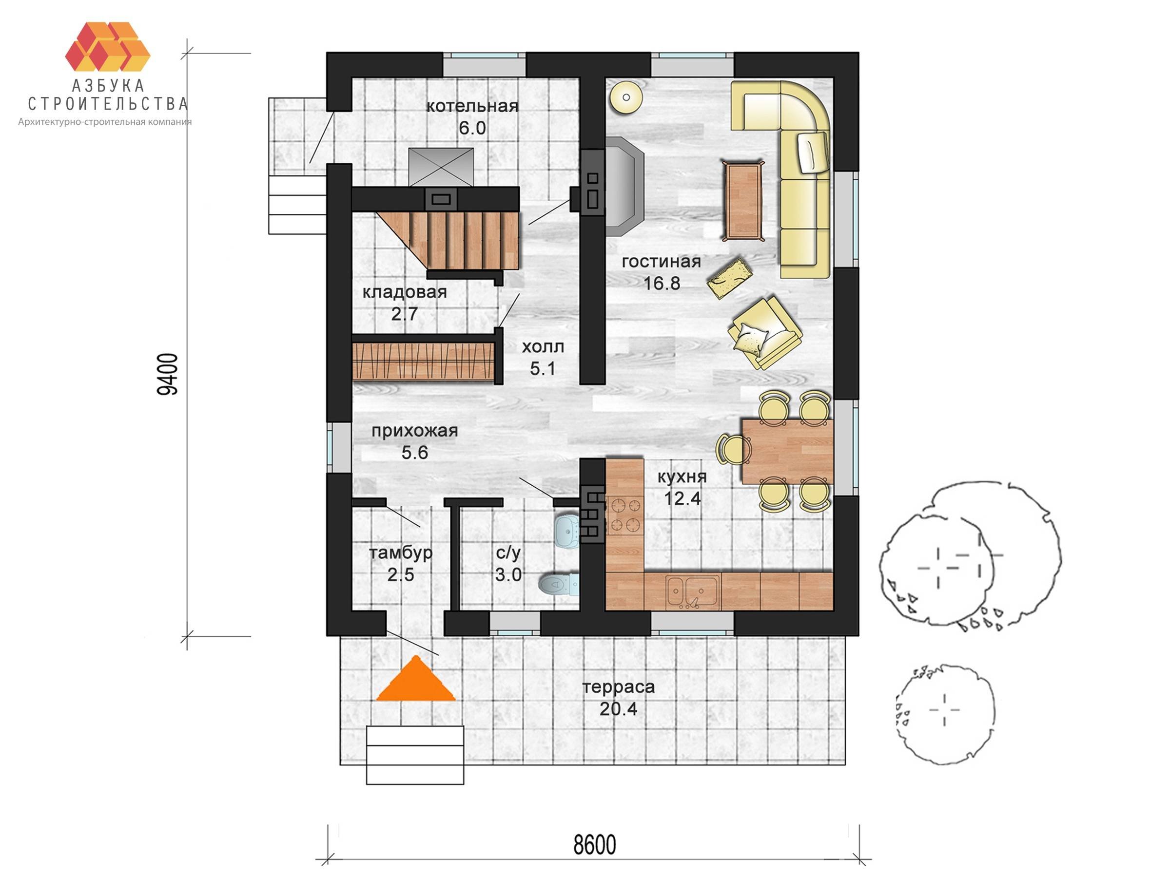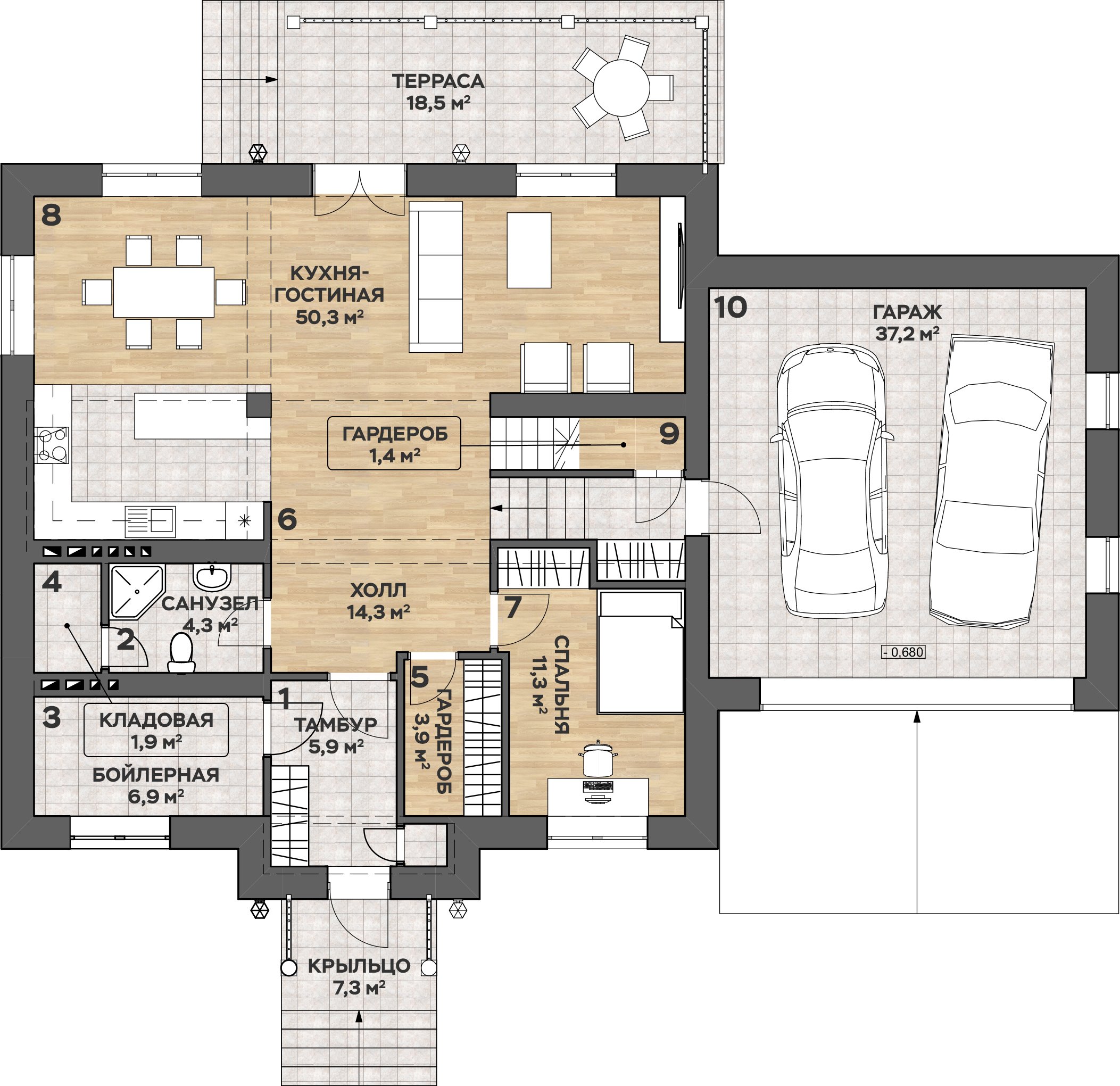 Проекты домов с террасой 3 спальни гардеробная кухня гостинная