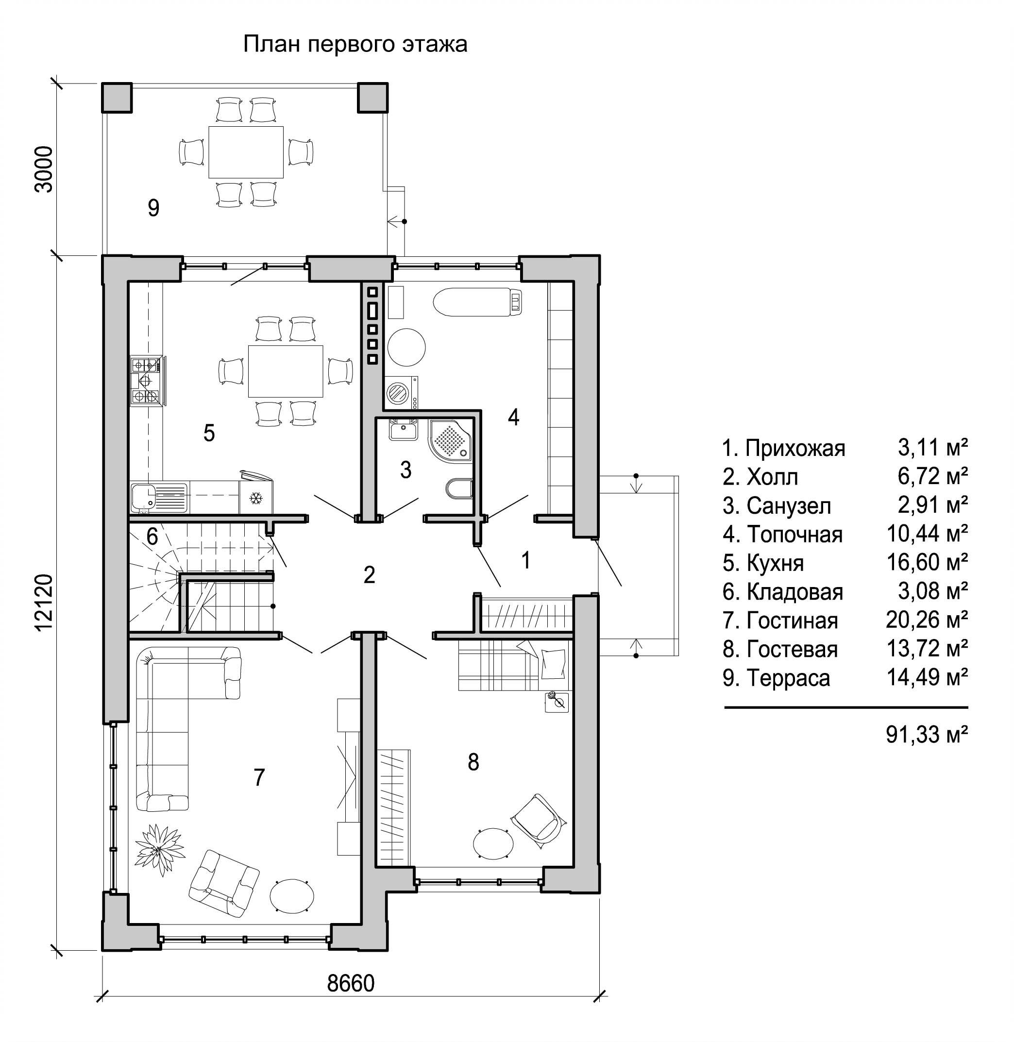 Дом 2 спальни кухня ванная Холл прихожая котельная гостинная