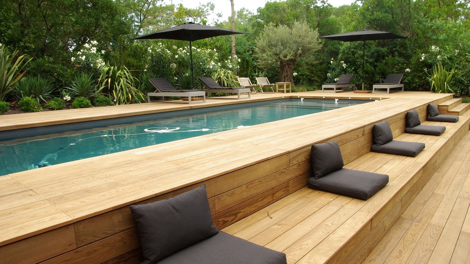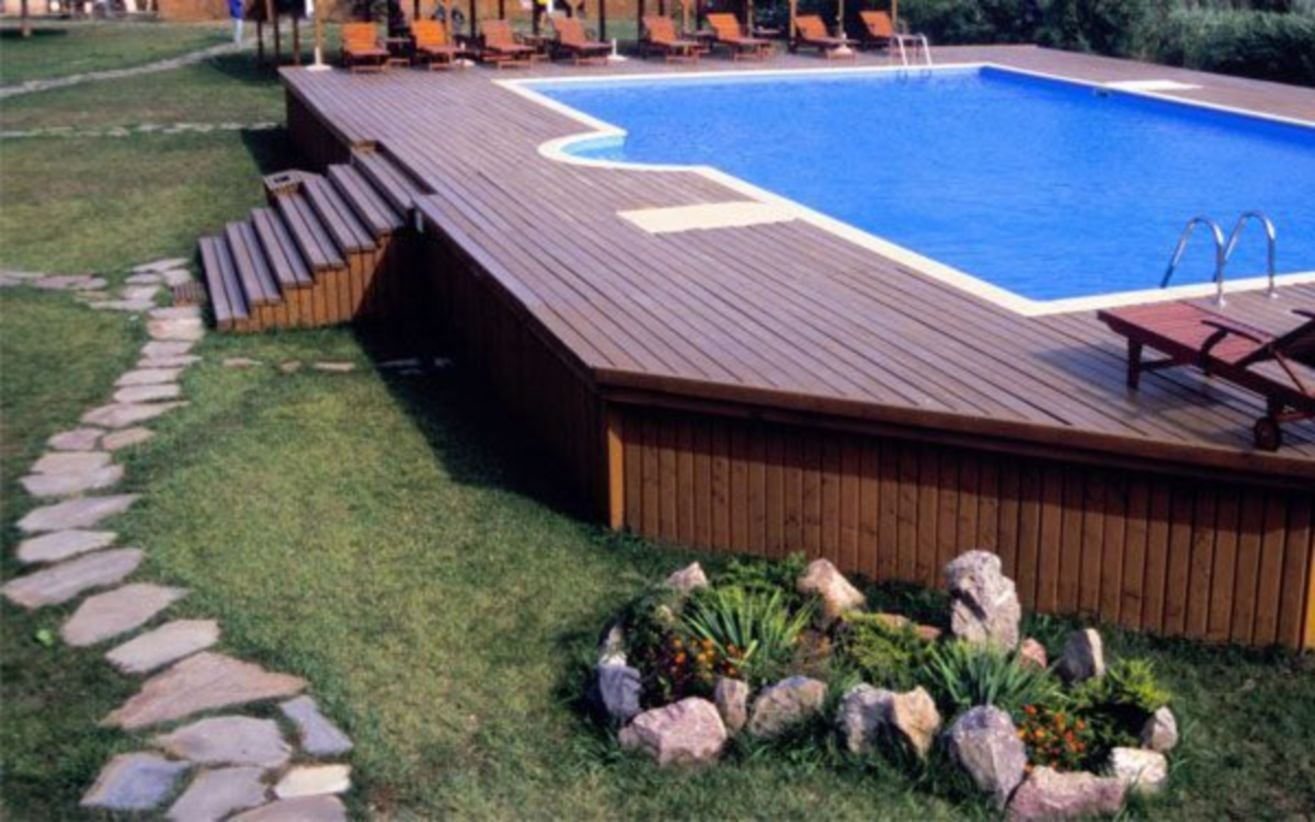Бассейн с деревянным настилом