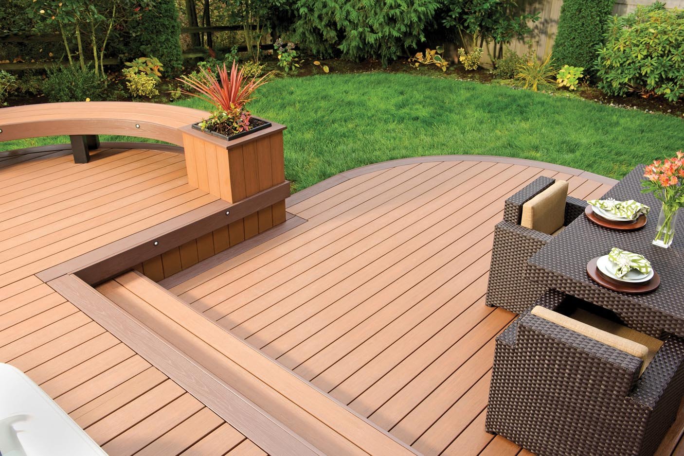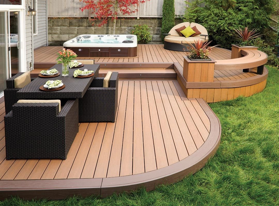 Террасная доска вокруг круглого бассейна
