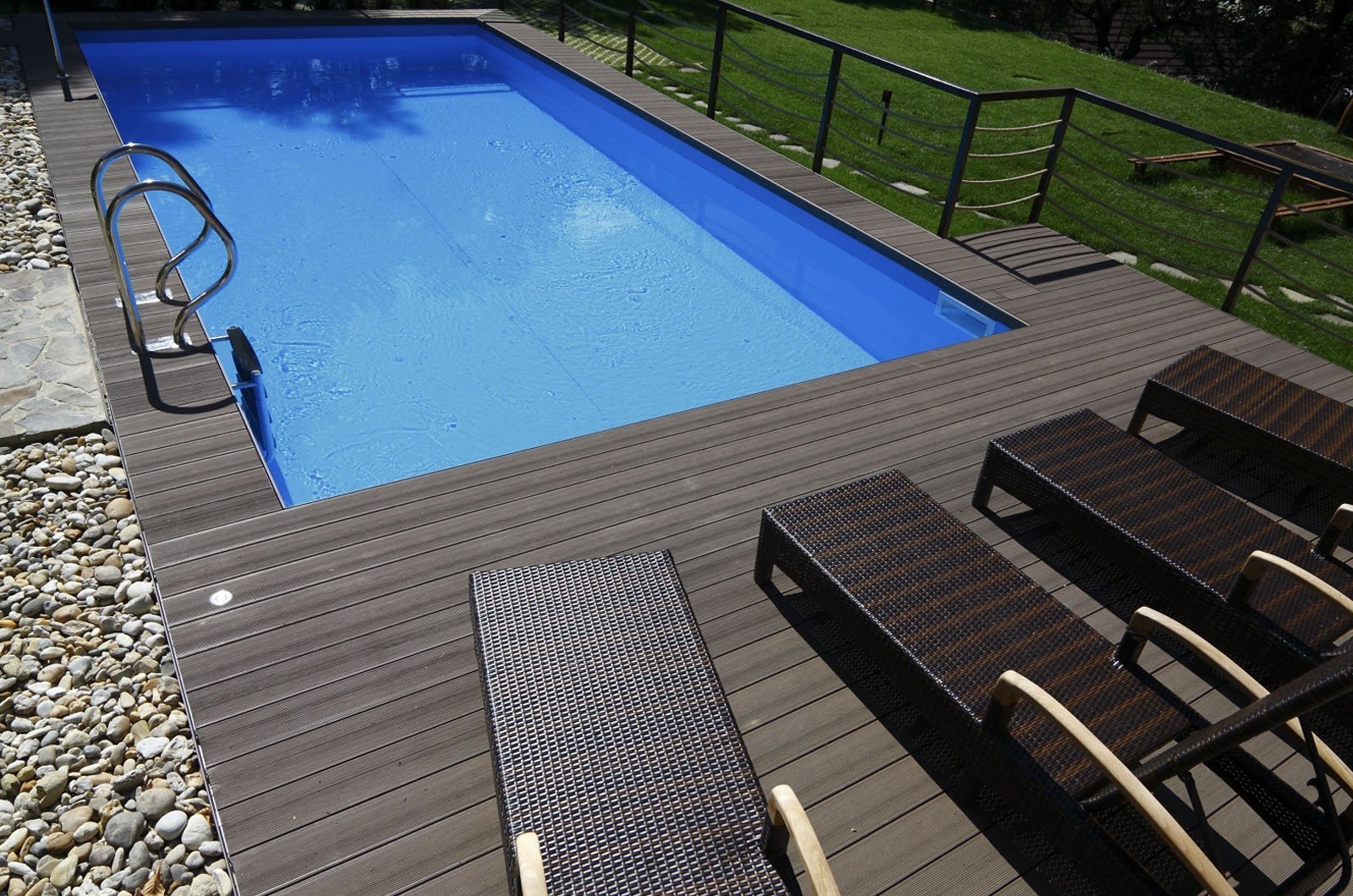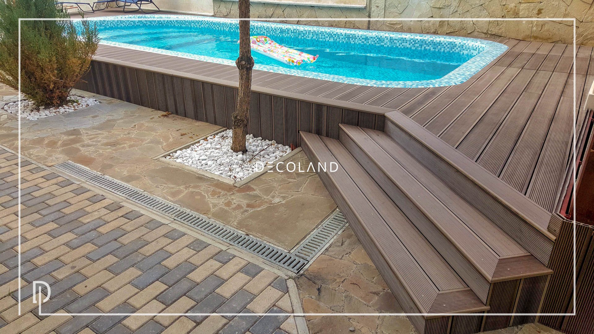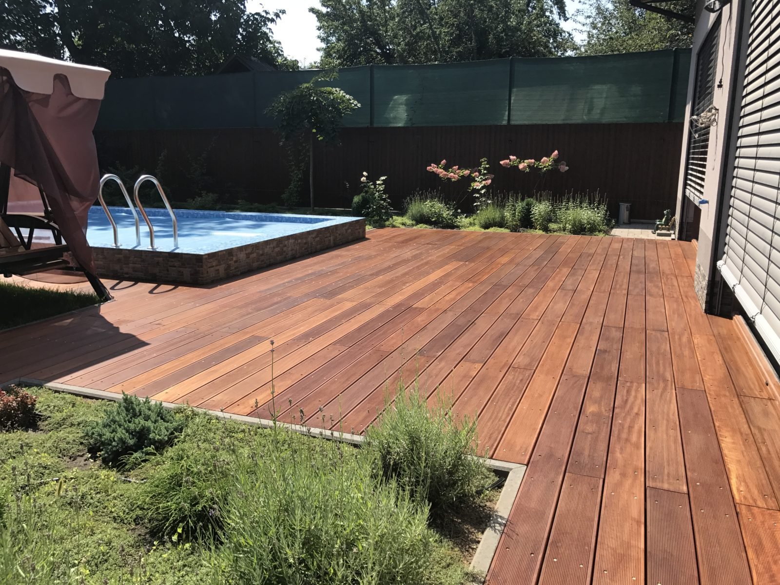 Площадка из террасной доски с бассейном