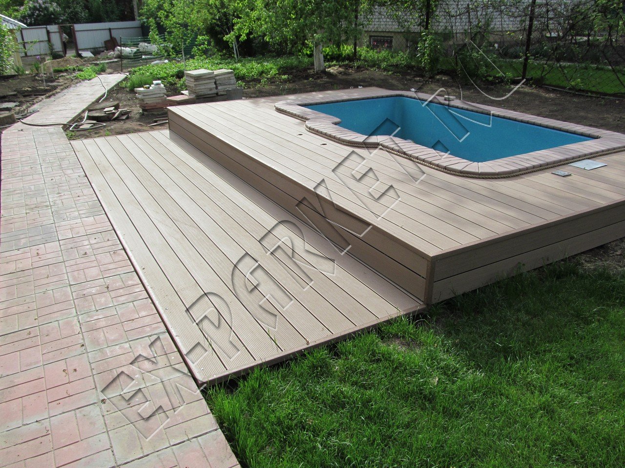 Подиум для бассейна из террасной доски