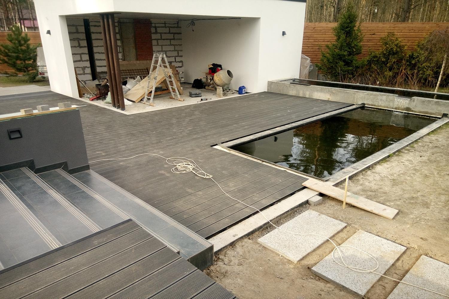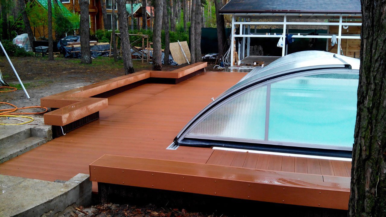 Площадка под бассейн из террасной доски