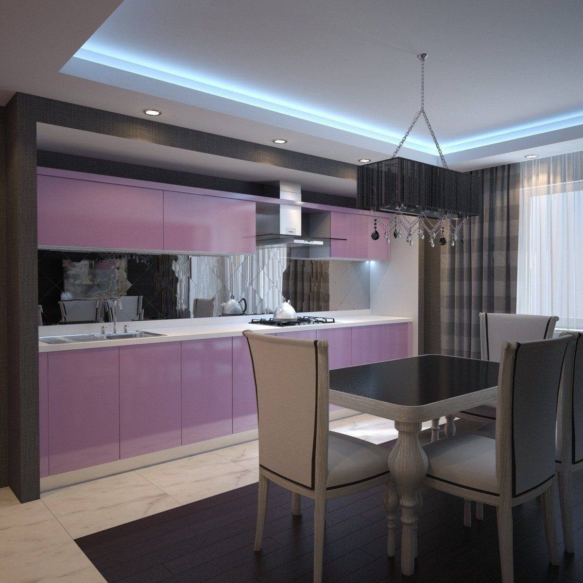 Кухня в сиреневых тонах