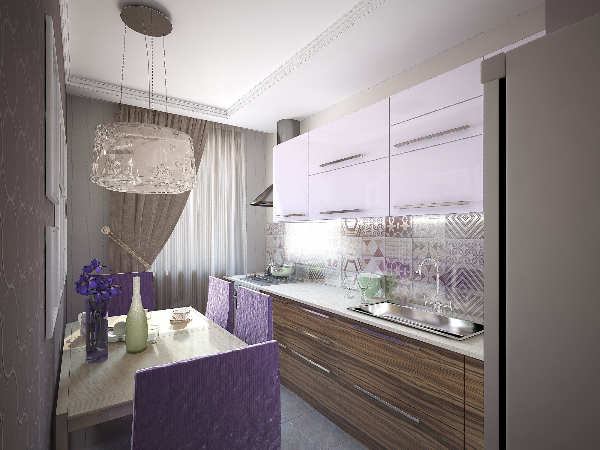 Кухня с сиреневыми акцентами