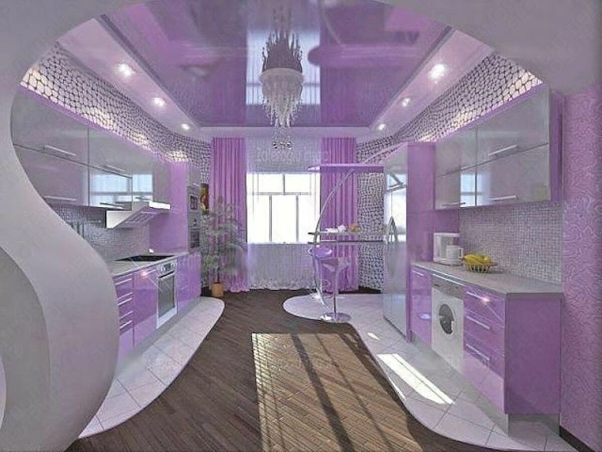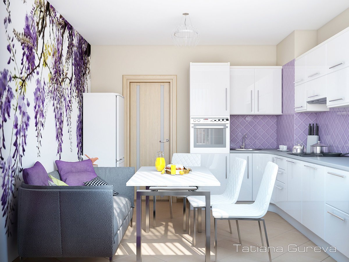 Интерьер кухни в сиреневых тонах