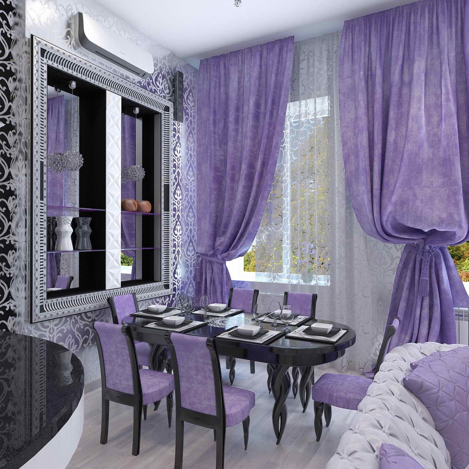 Фиолетовые шторы в интерьере