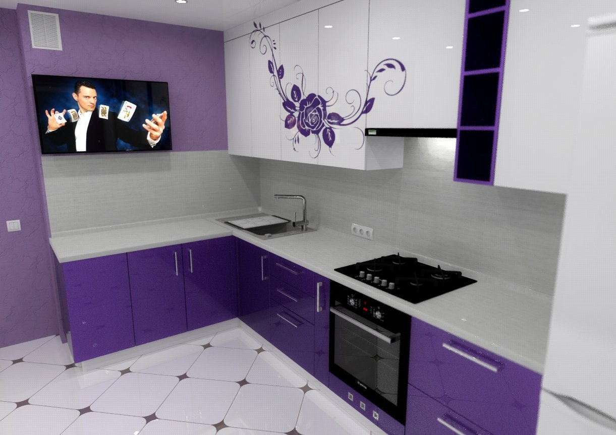 Кухня фиолетовая с белым