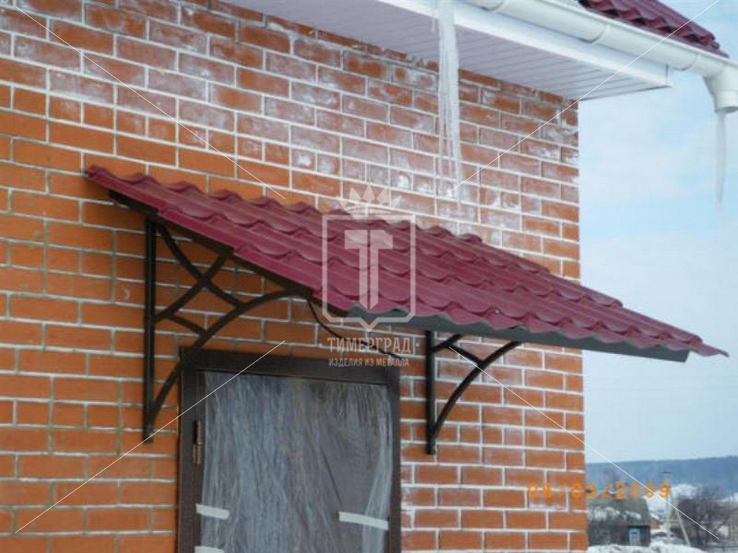 Козырёк над крыльцом из металла односкатный