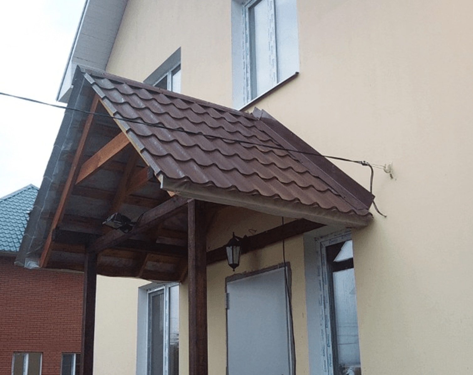 Козырёк над крыльцом из металлочерепицы