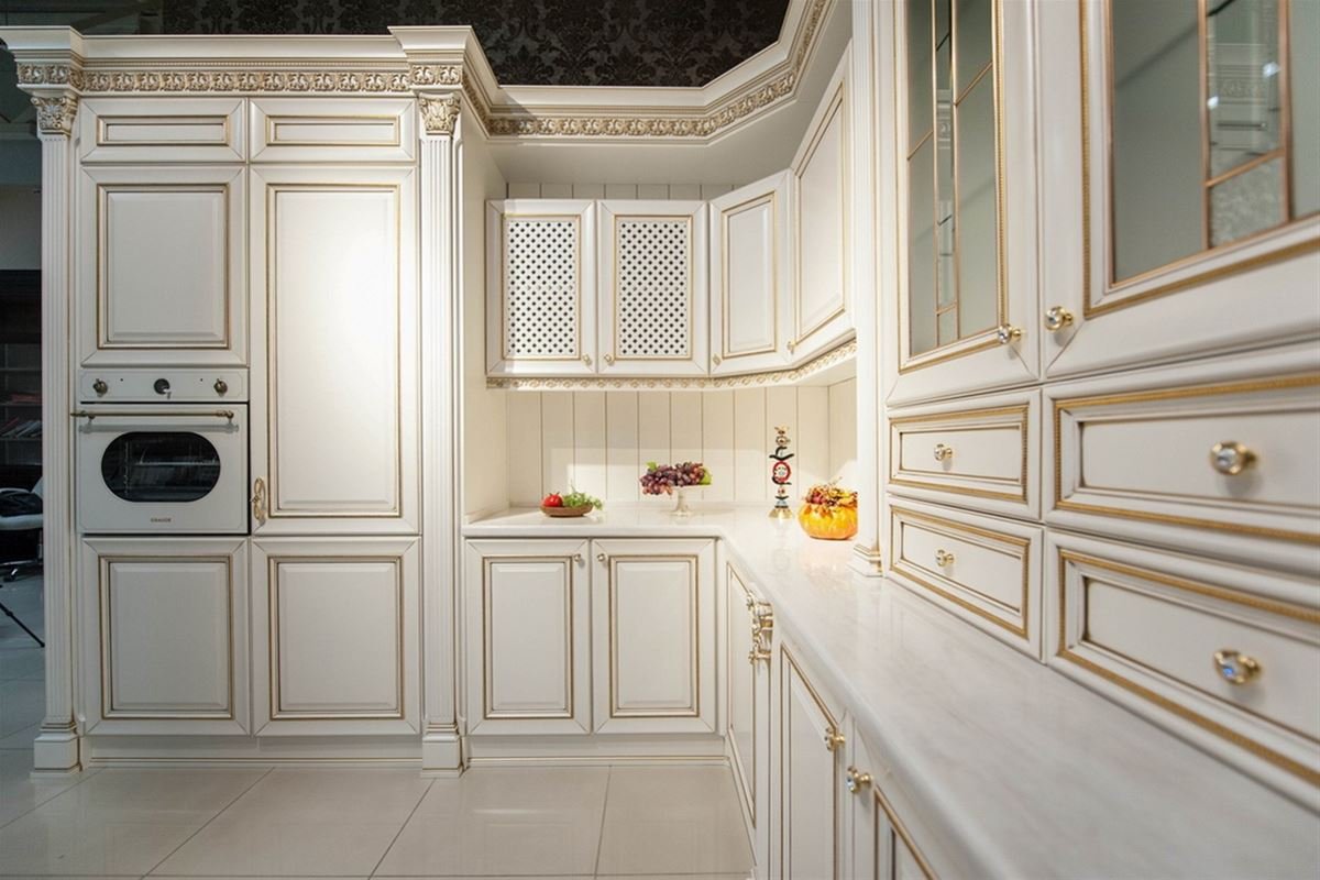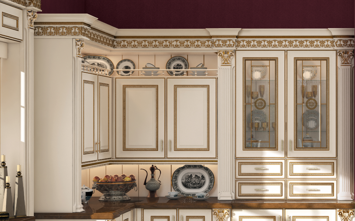 Классическая мебель для кухни карнизы