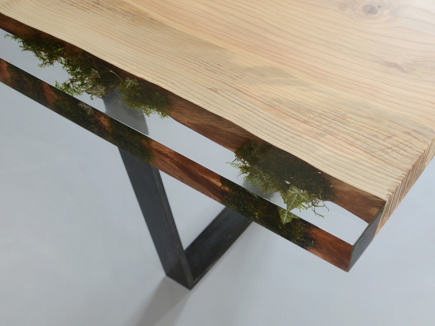 Стол из эпоксидной смолы и дерева и мха