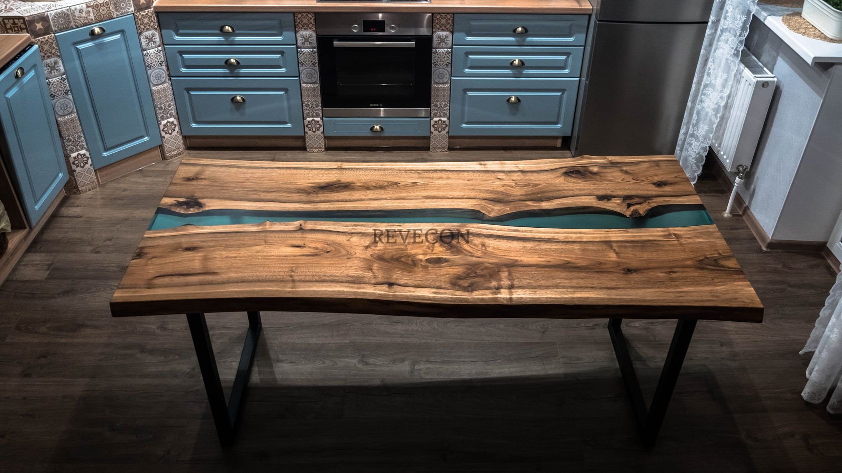 Кухонный стол из эпоксидной смолы с железными ножками