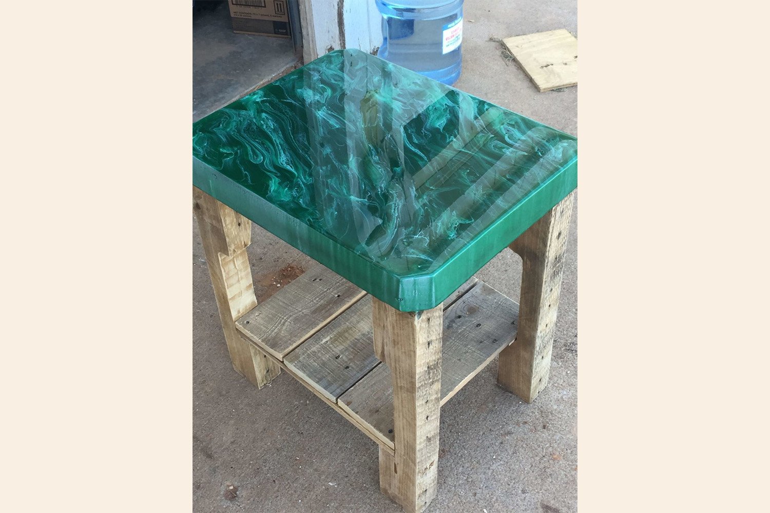 Стол из поддонов с эпоксидной смолой