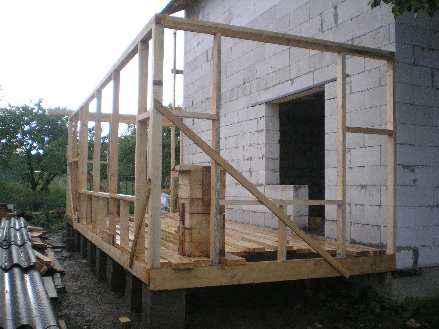 Пристройка террасы к дому из газобетона