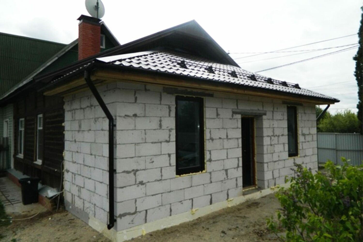 Пристройка из газобетона к деревянному дому