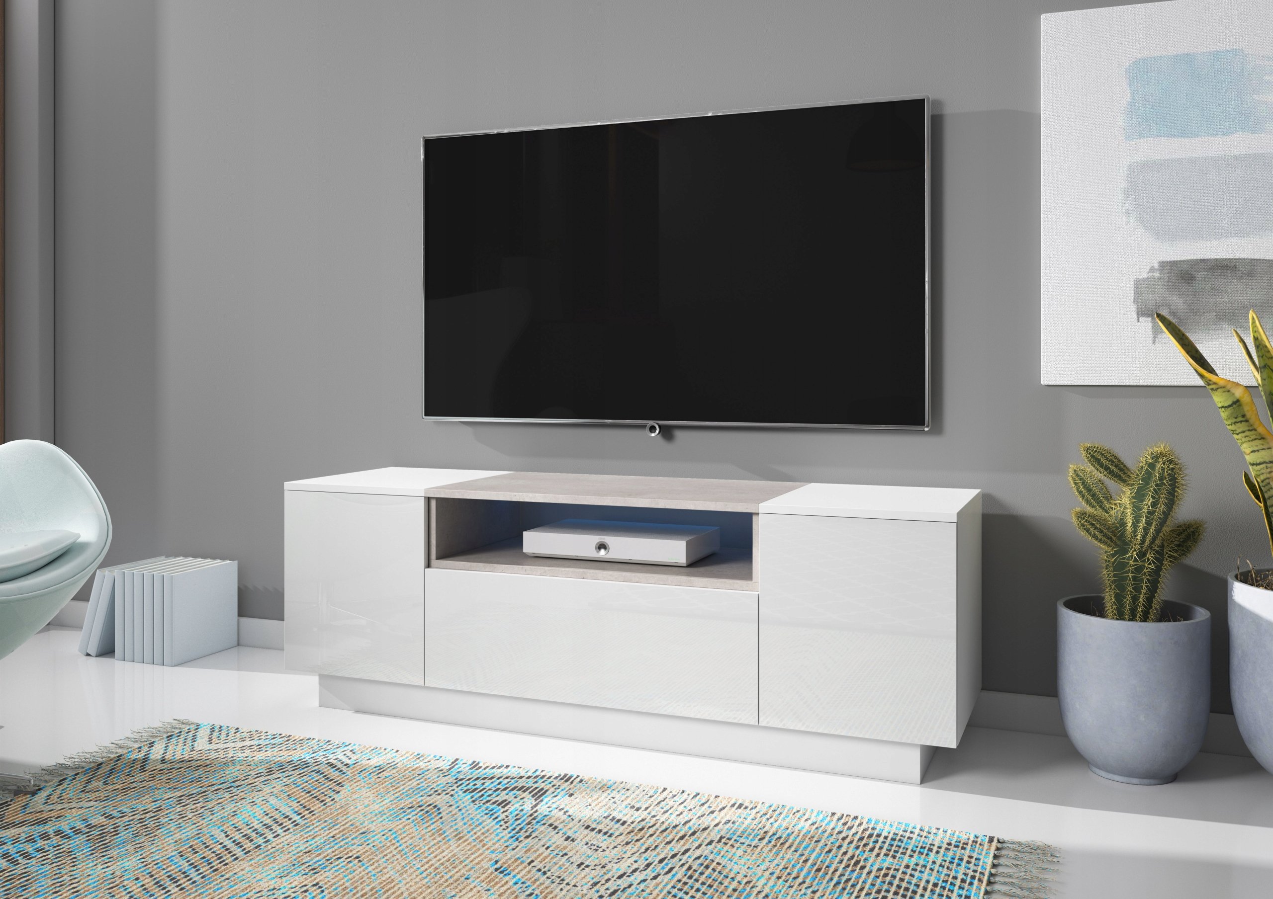 Тумба под телевизор лазурит белый глянец