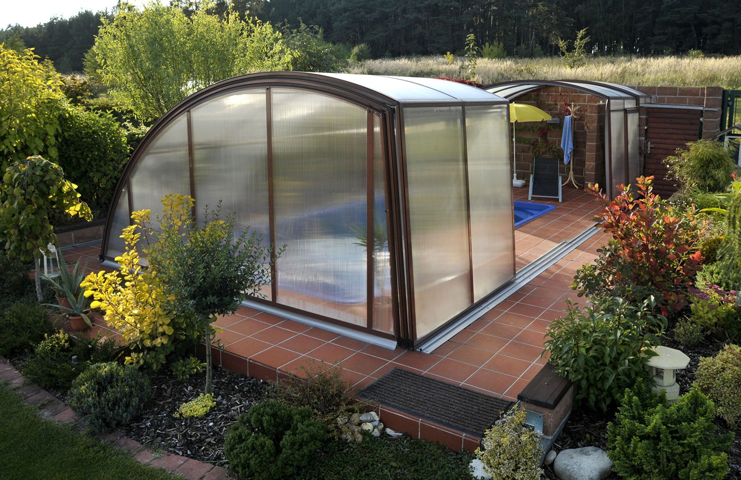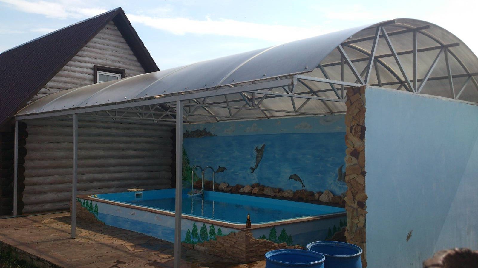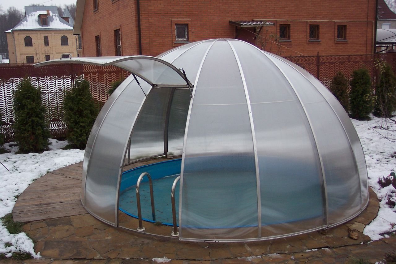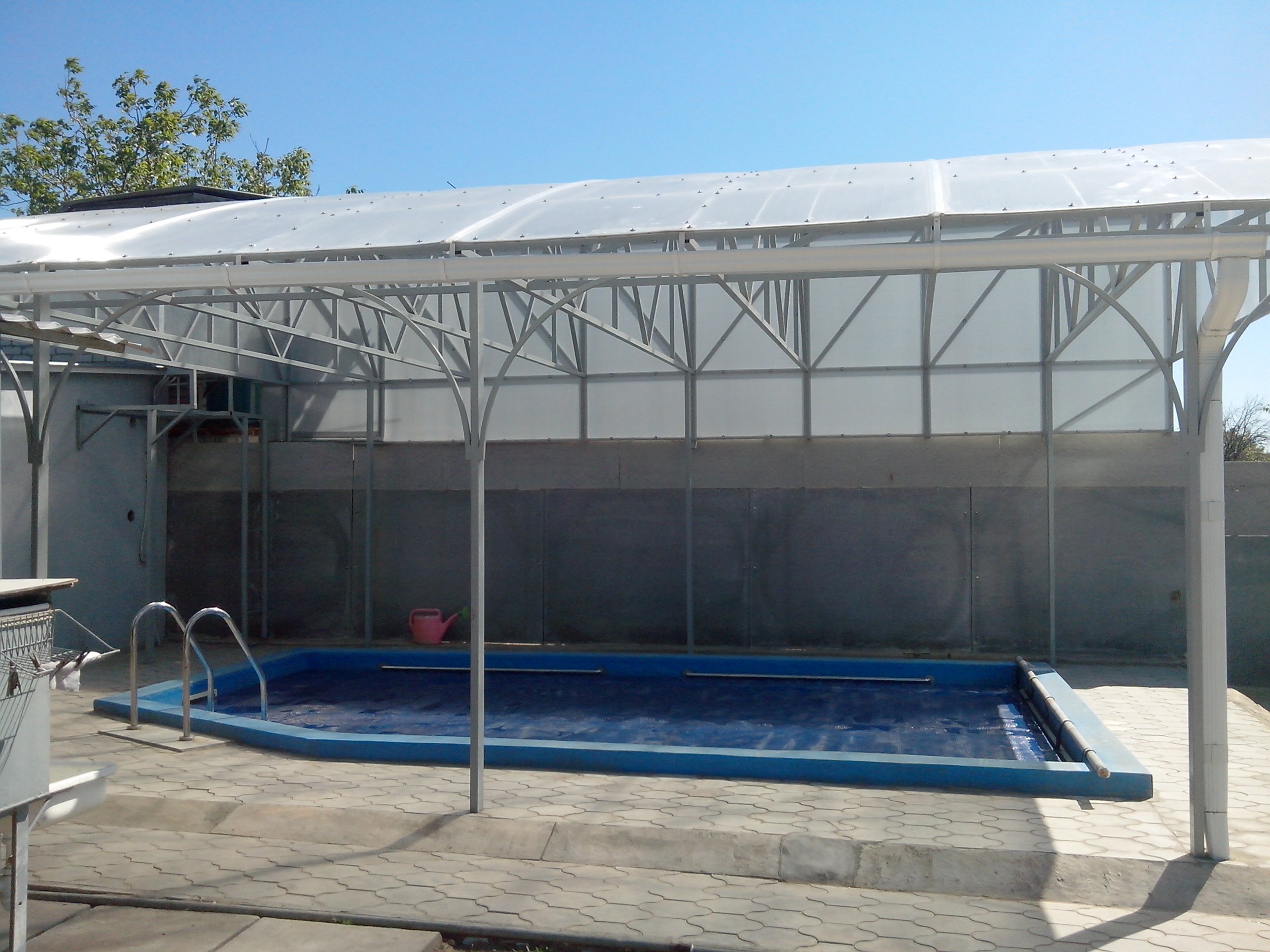 Бассейн под навесом из поликарбоната