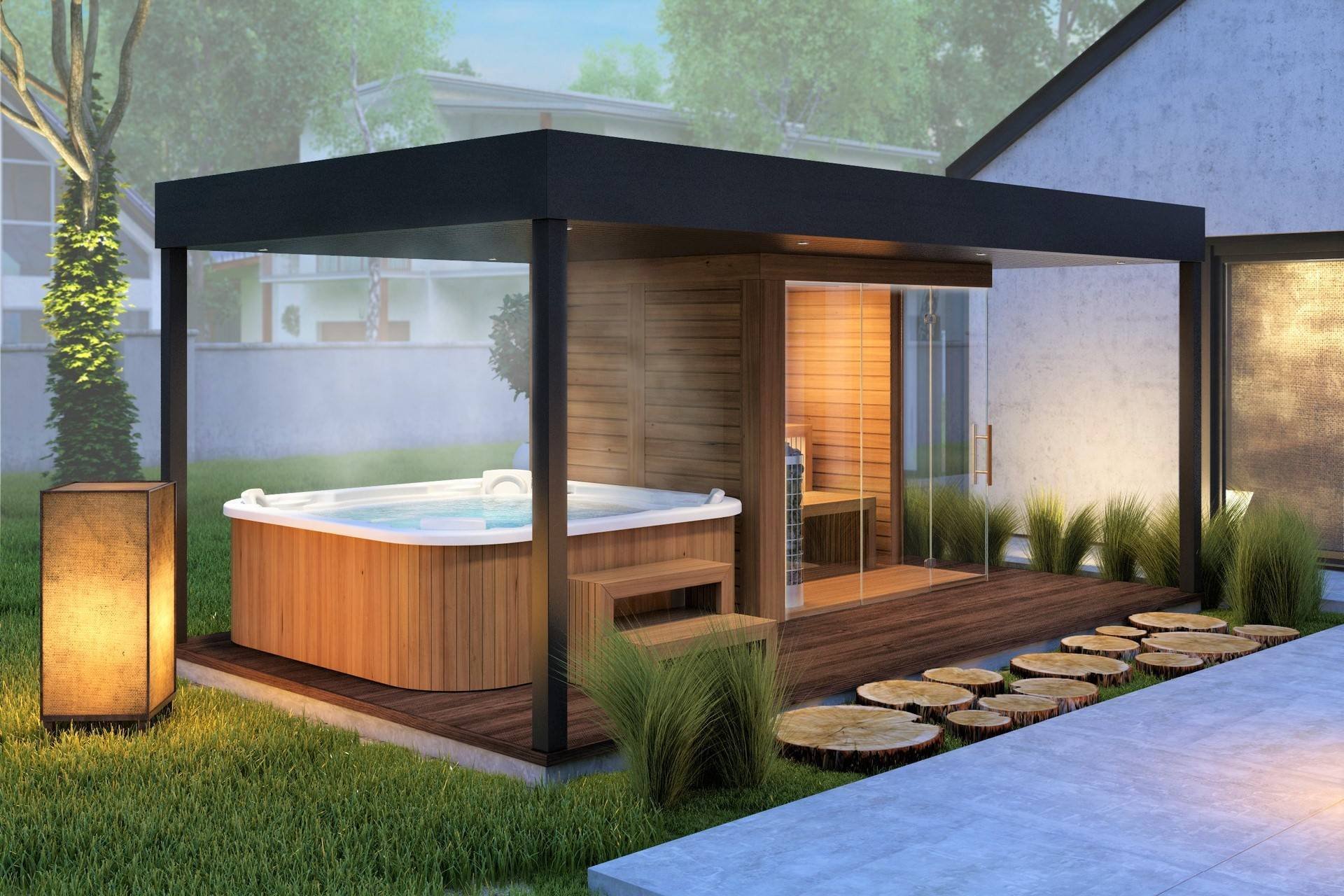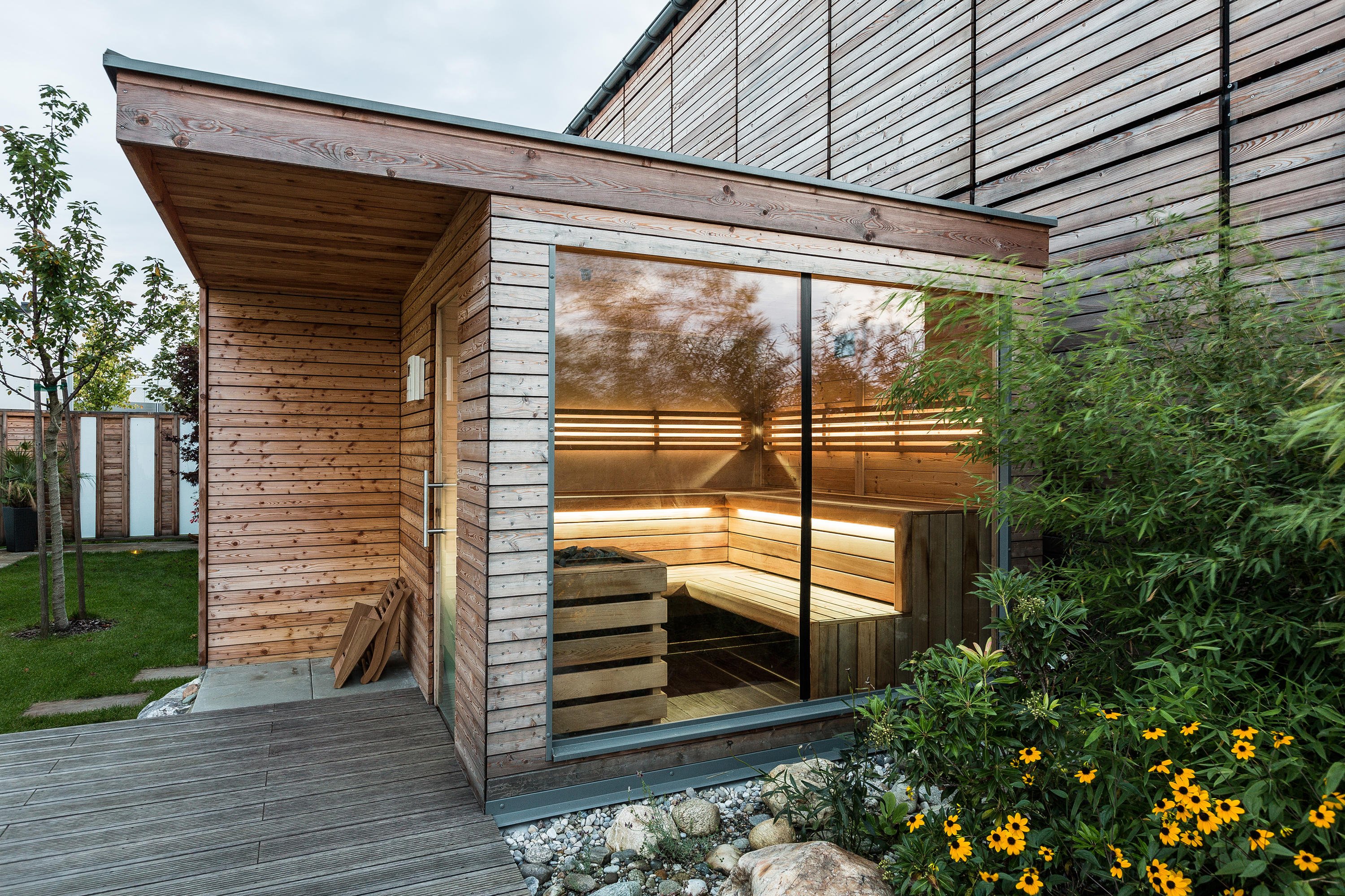 Современная баня с террасой