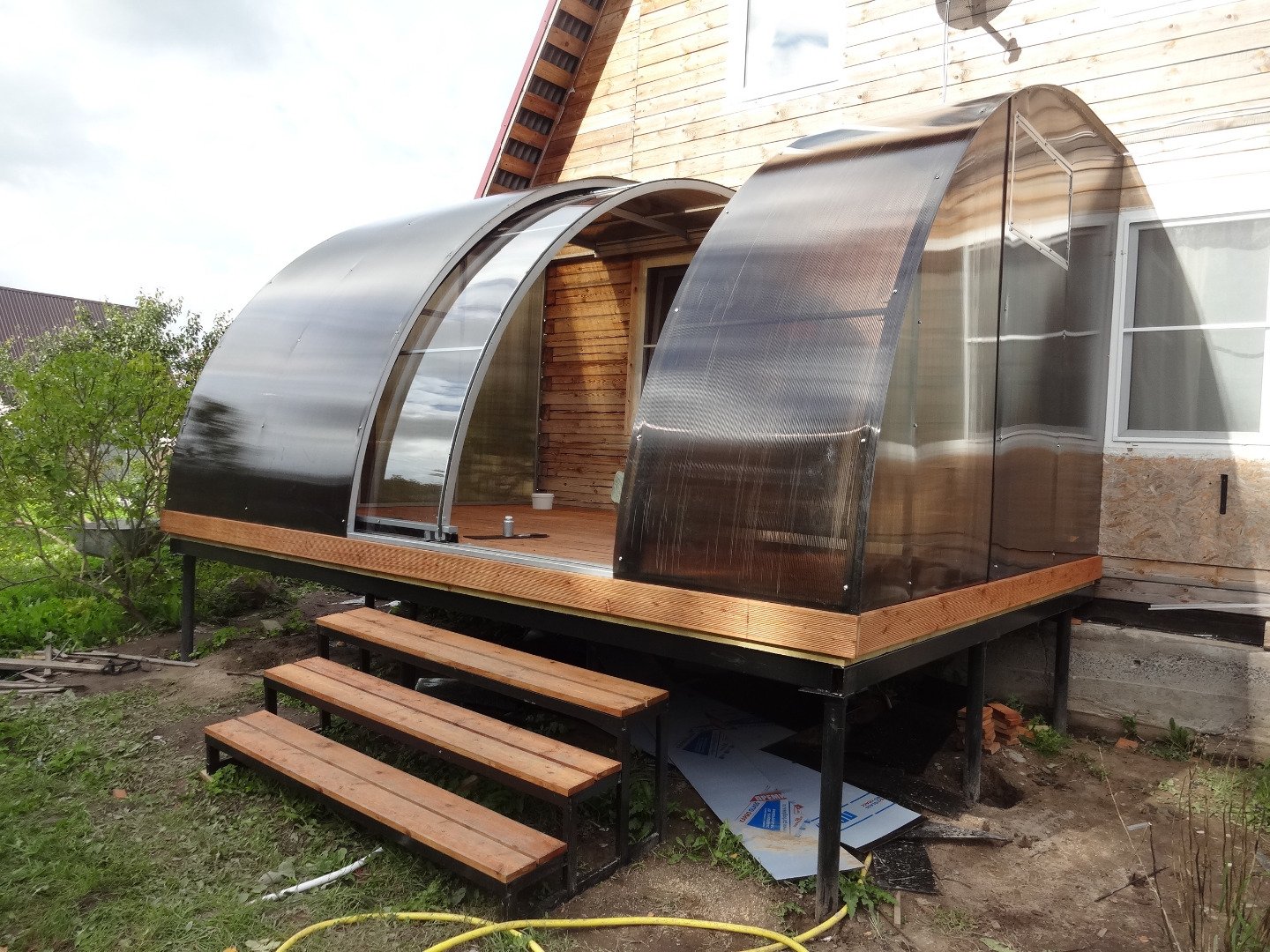 Беседка к дому из поликарбоната