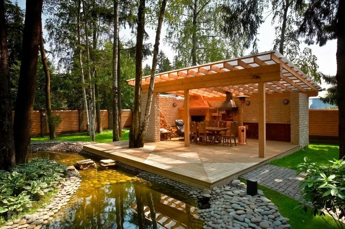 Ландшафт баня дом мангальная зона