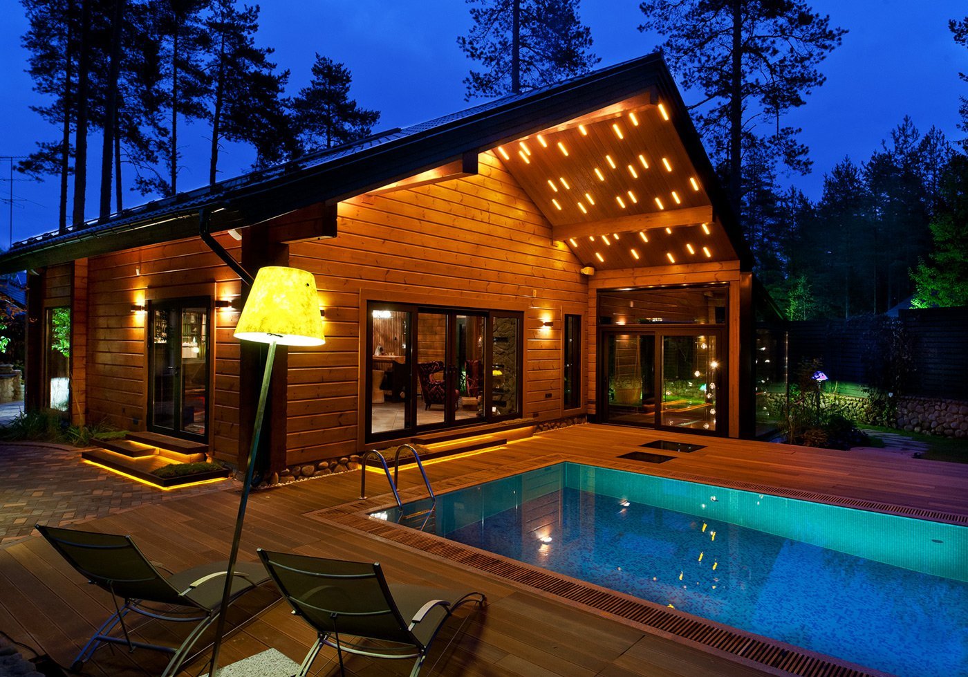 Деревянный дом с бассейном