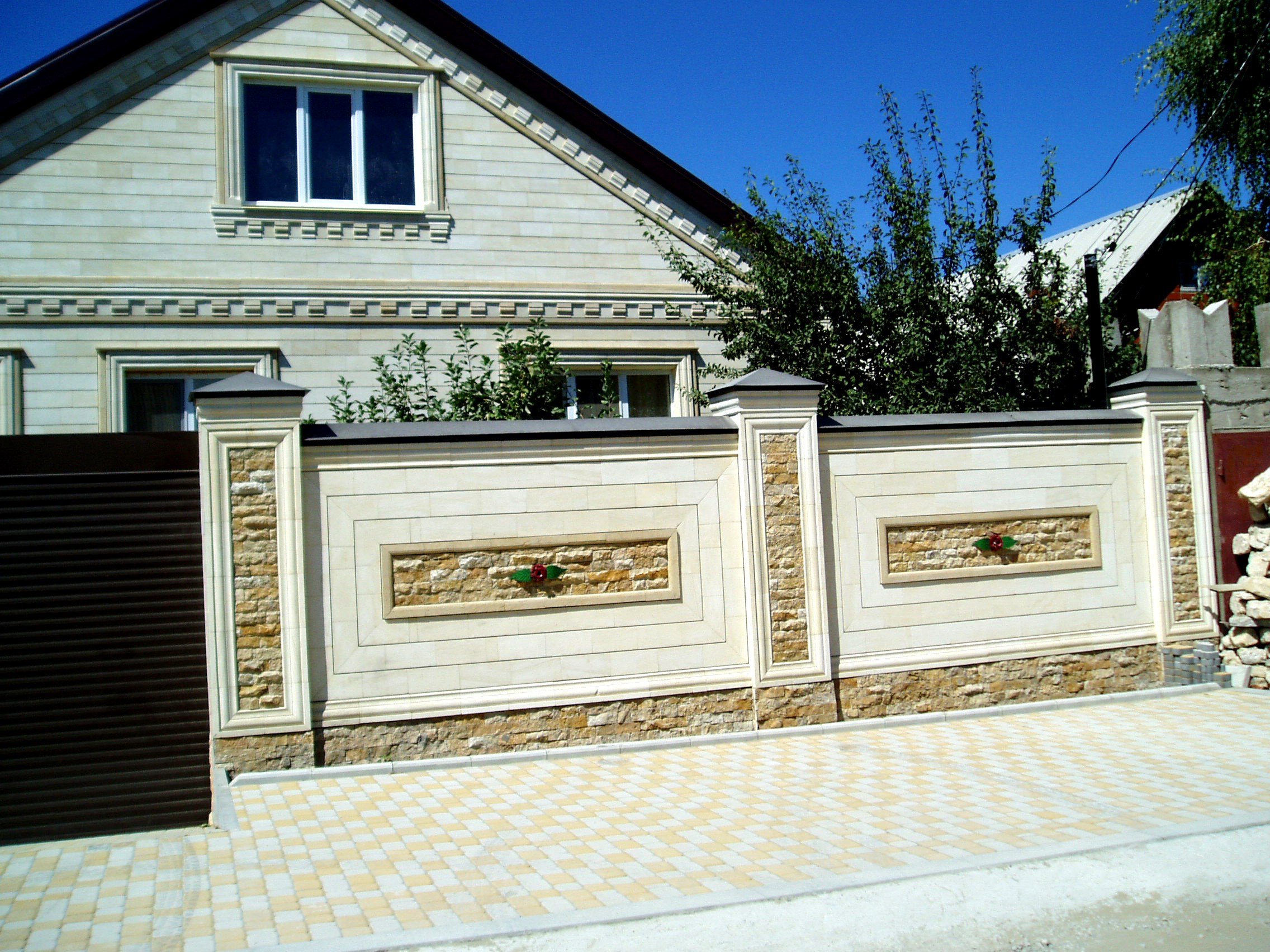 Травертин фасад забор