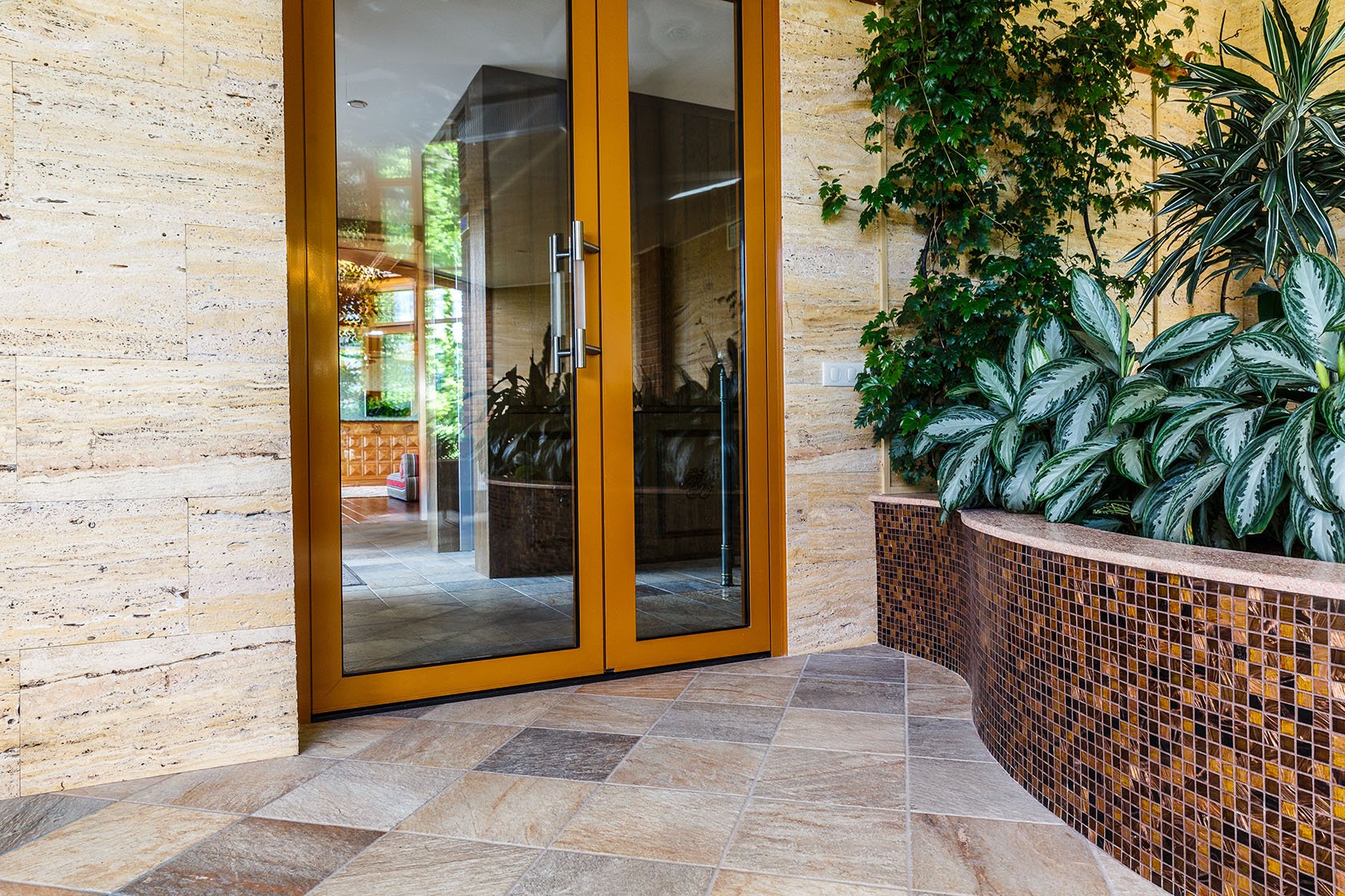 Плитка из травертина во дворе