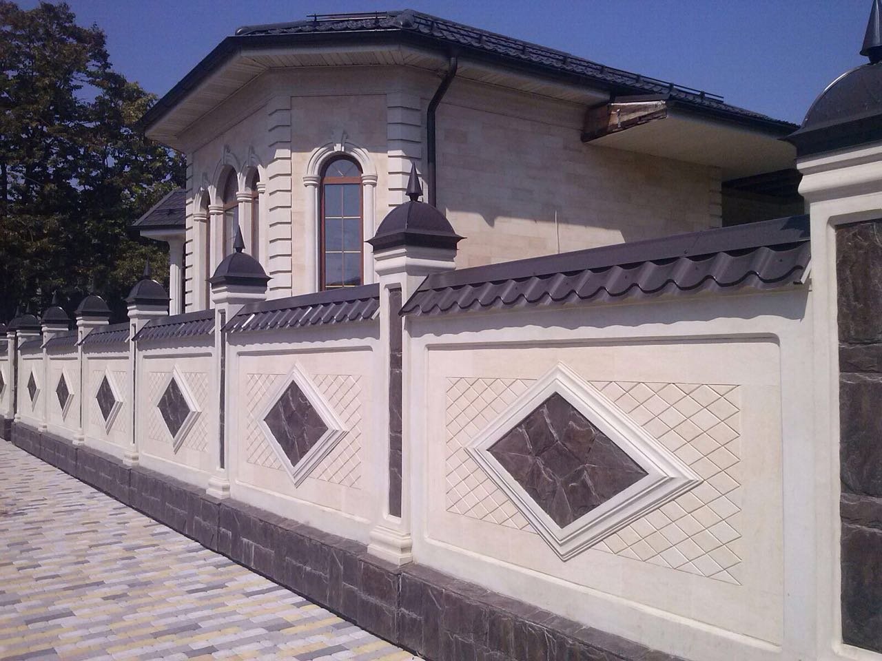 Забор облицованный керамогранитом