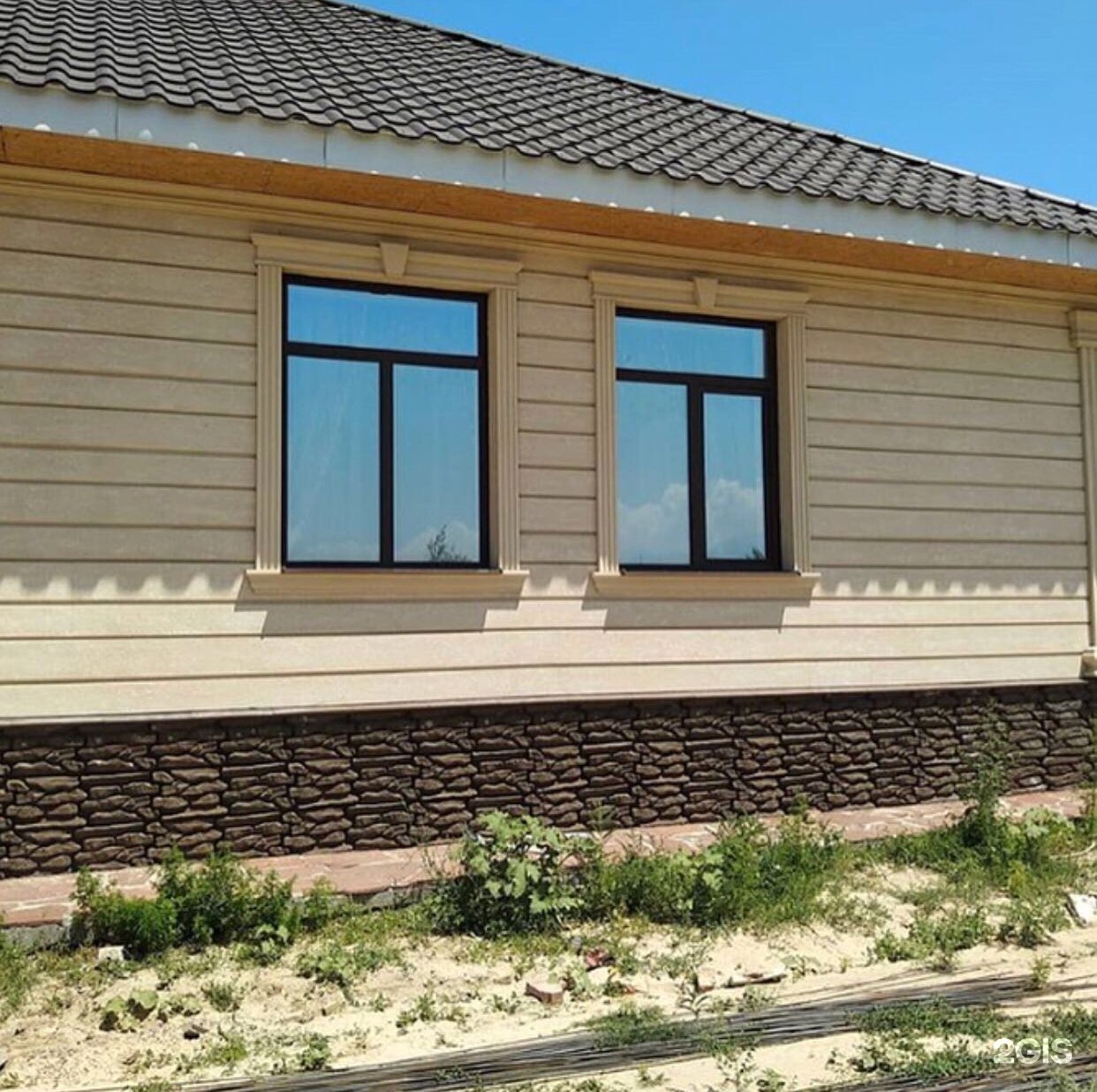 Одноэтажный дом из травертина