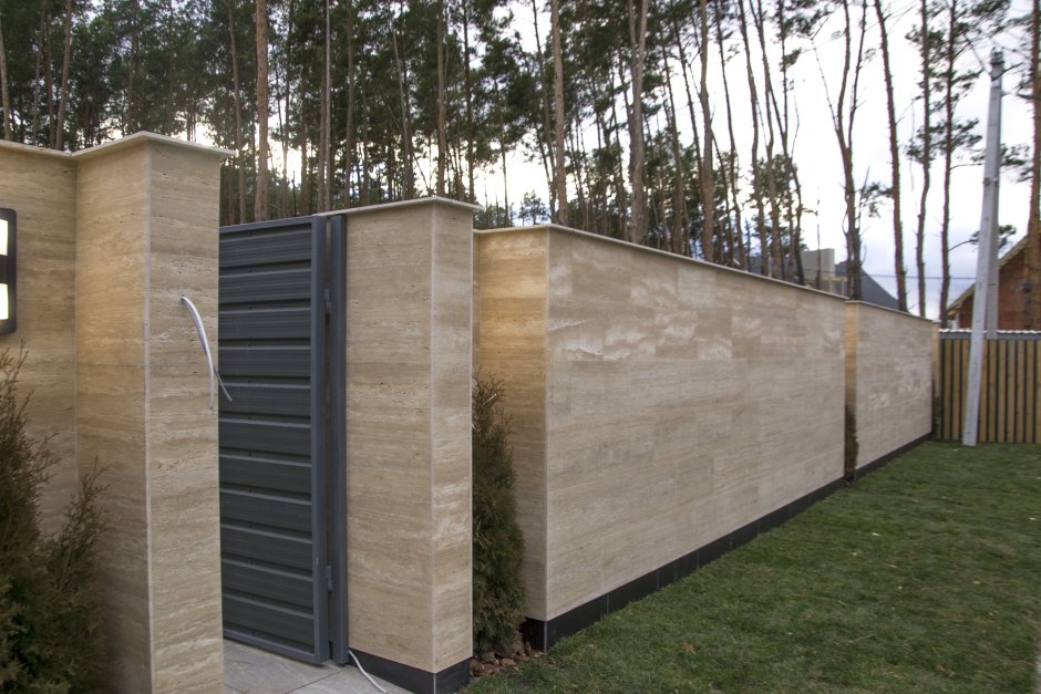 Забор отделка травертином