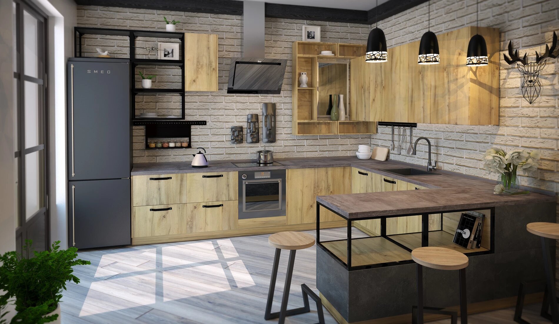 Кухни в стиле лофт Лорена