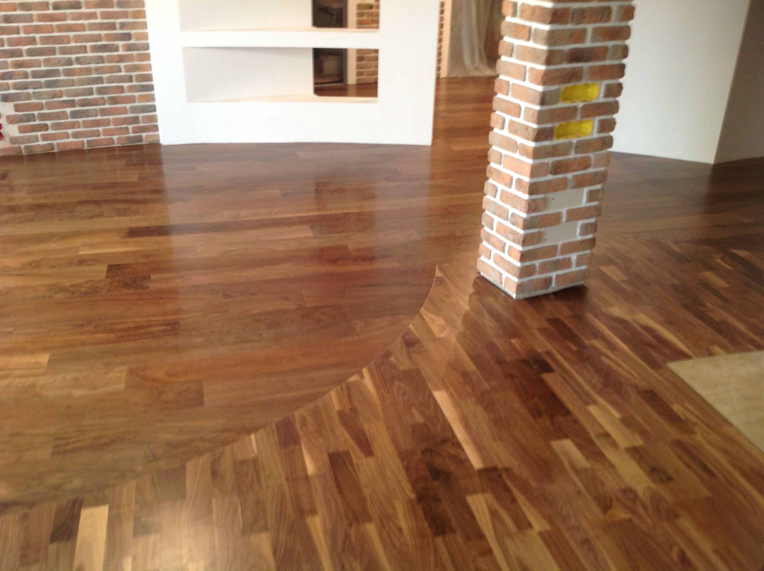 Раскладка деревянного пола из кирпича
