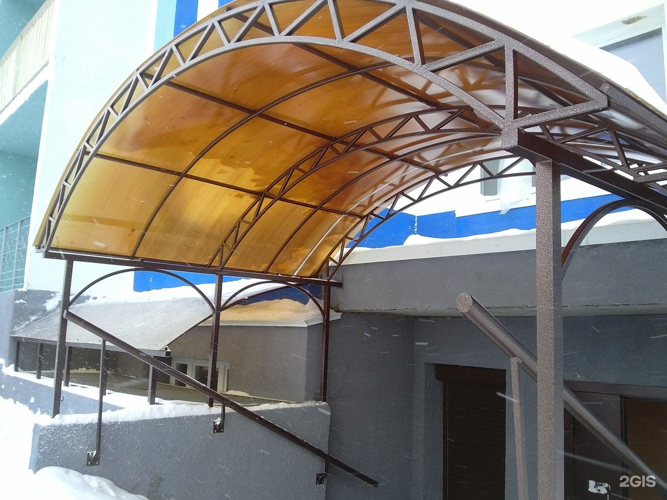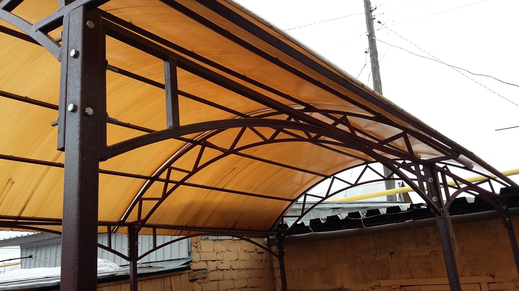 Навес из поликарбоната по метал фермам 3360х1350х3300